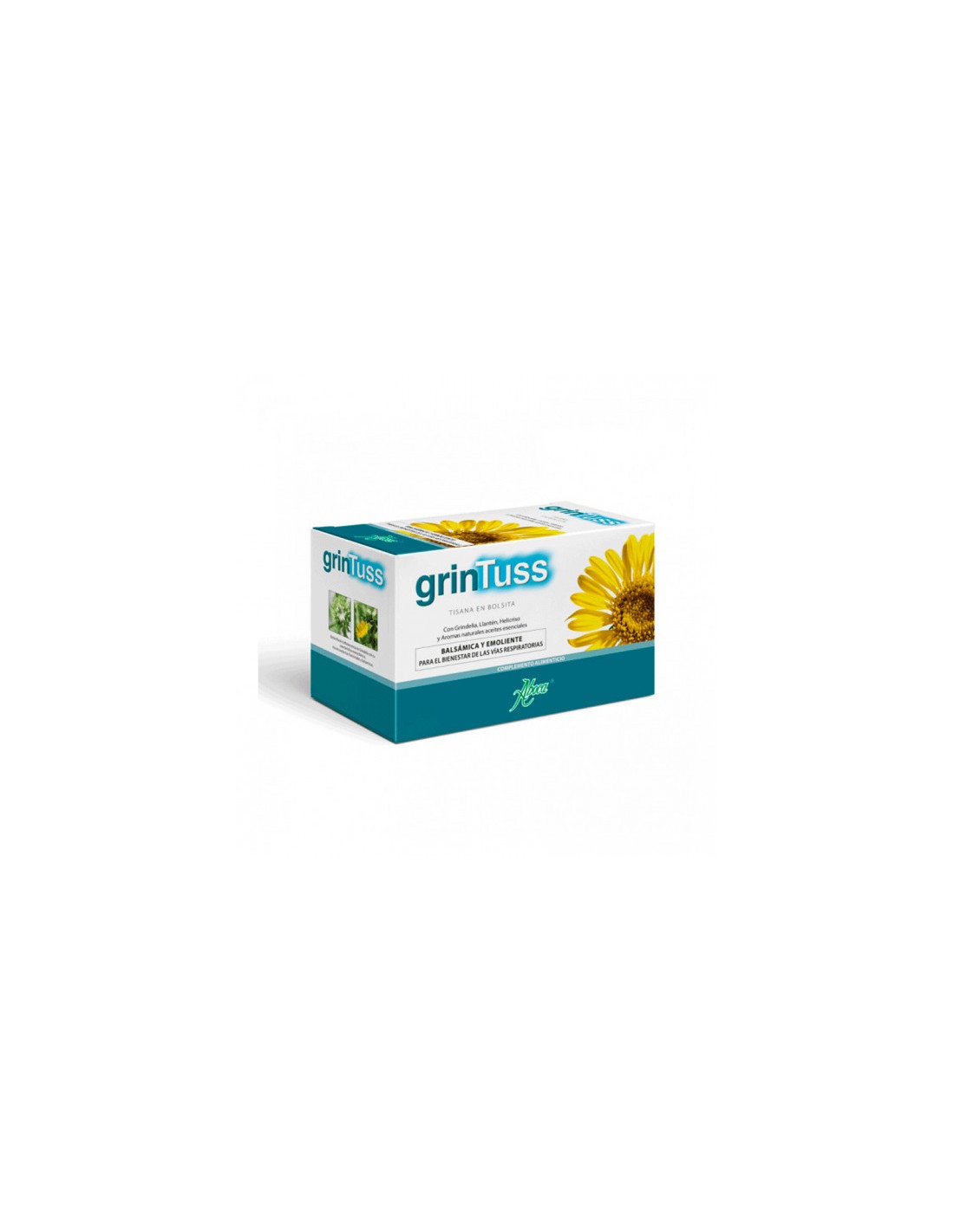 Grintuss Tisana 20 filtros 1,5g son unas tisanas con aromas naturales de aceites esenciales con efecto balsámico que suavizan la garganta , la hidratan y la protegen gracias a su composición seleccionada de plantas como la menta, la gridelia, el llantén, Helicristo y tomillo.