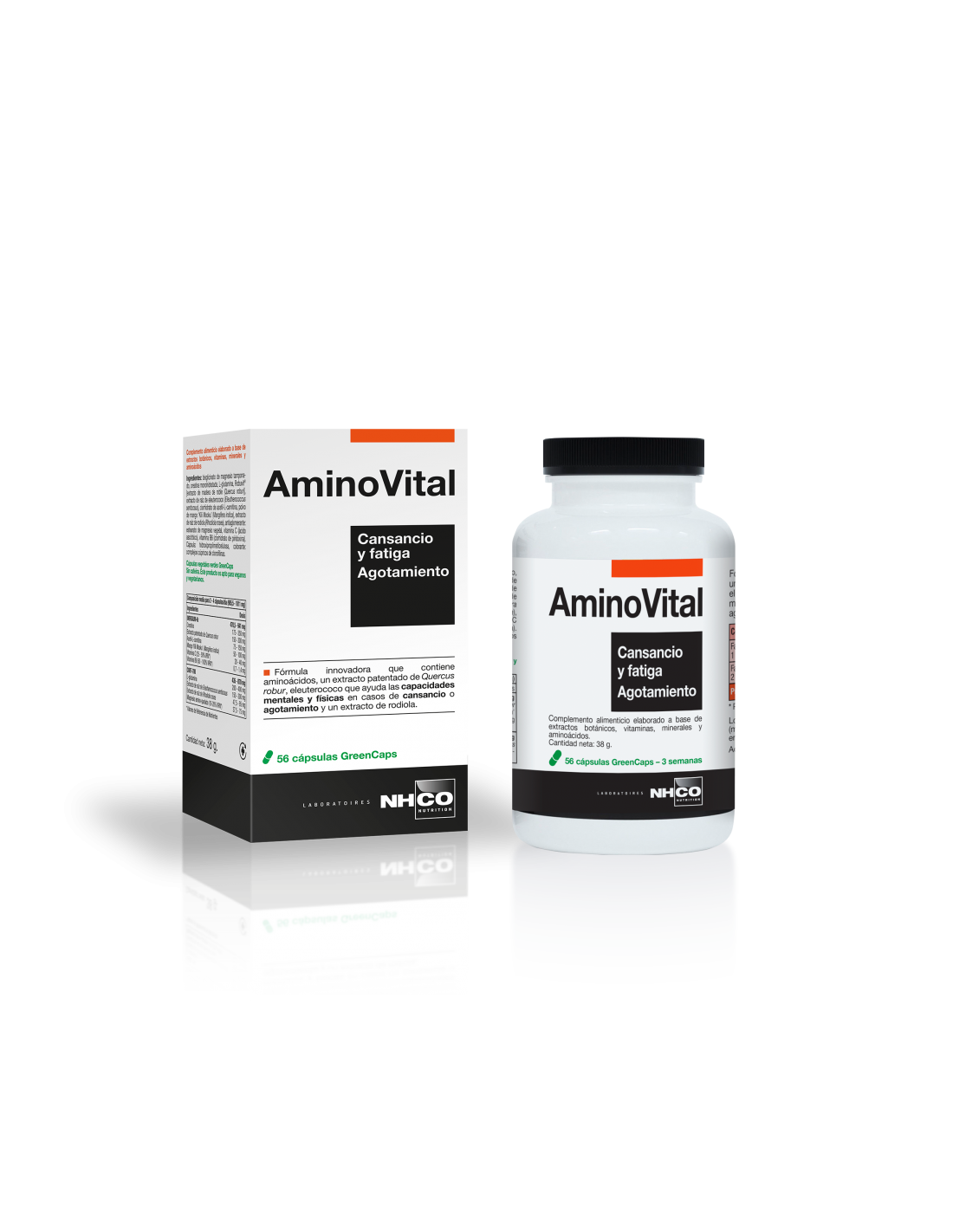 AMINOVITAL 56 CAPSULAS es una fórmula innovadora que contiene aminoácidos, un extracto patentado de Quercus robur, eleuterococo que ayuda las capacidades mentales y físicas en casos de cansancio o agotamiento y un extracto de rodiola.